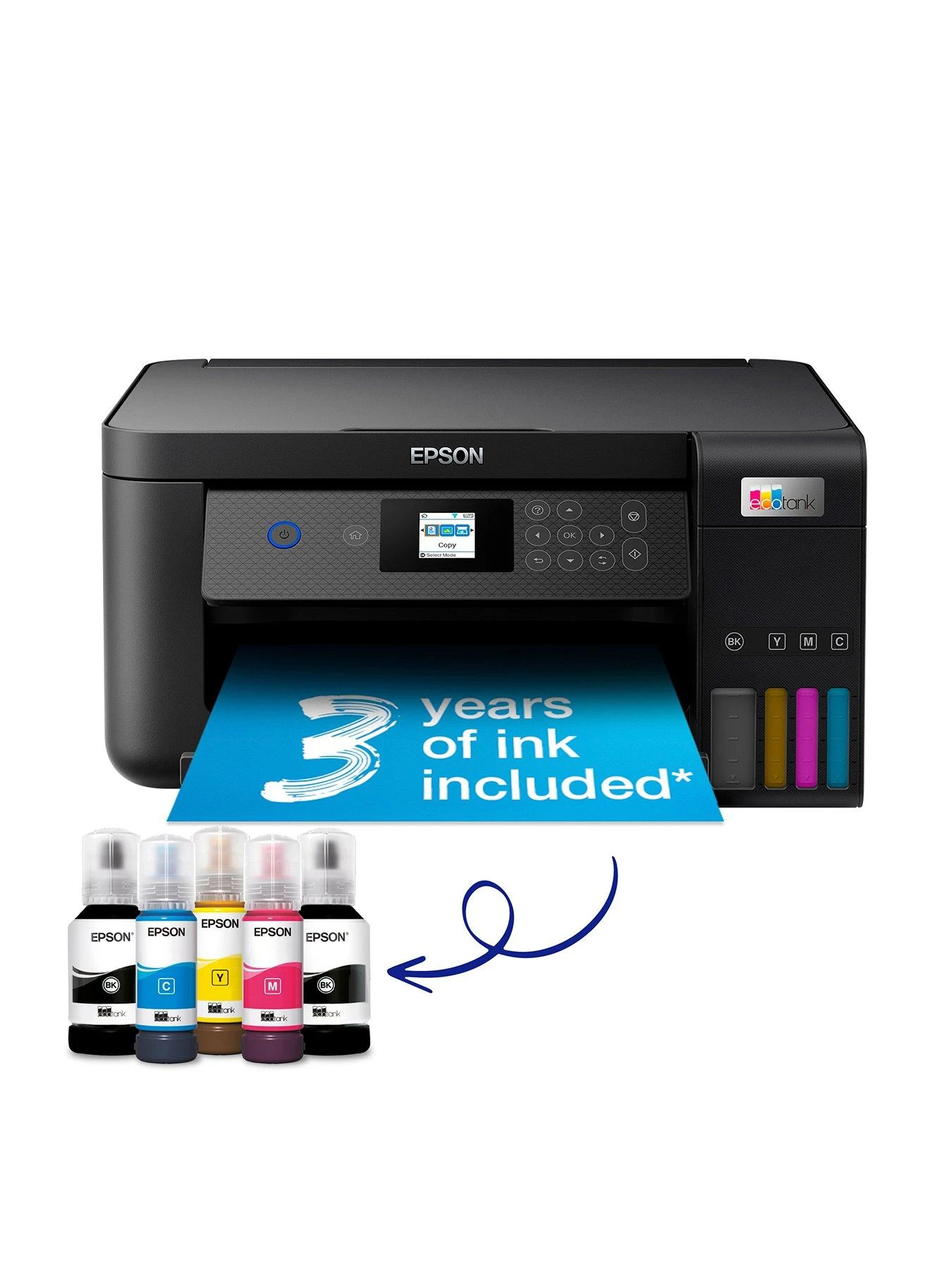 Enjoy mobile printing and an ultra-low cost per page with this multifunction inkjet printer with double-sided printing. Save up to 90% on printing costs with Epson’s cartridge-free EcoTank printers. Supplied with high yield ink bottles, the integrated ink tanks are easy to fill thanks to the specially engineered ink bottles. With no cartridges to replace, flexible connectivity features and double-sided printing, this is the perfect printer for anyone looking for high-quality prints at an incredibly low cost per page.
