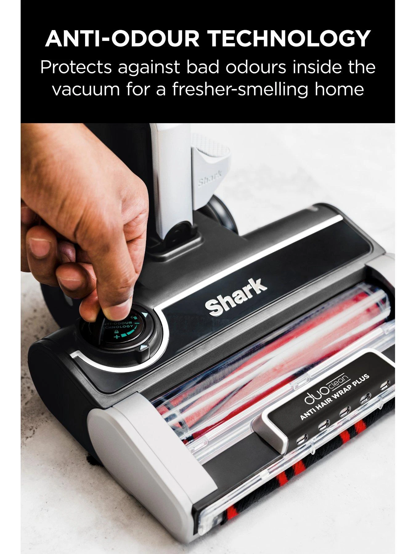 Glide from carpets to hard floors with Shark’s signature DuoClean floorhead. Two motorised brush-rolls working together in one floorhead – the Anti Hair Wrap Plus brush-roll deep cleans carpets, drawing out embedded dirt and picking up hair, while a soft front brush-roll draws in debris and lifts stuck-on dust from hard floors. LED headlights illuminate hidden dust and pet hair pile-ups.
