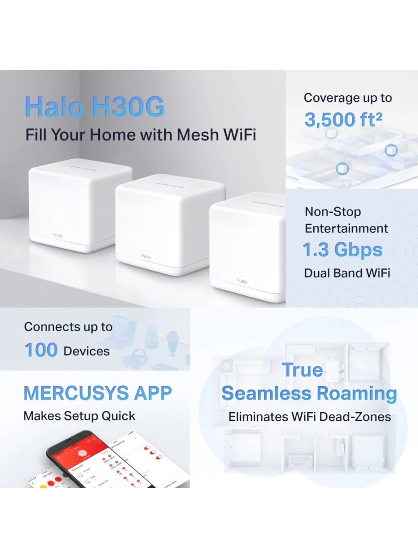 - 1.3 Gbps Dual Band WiFi – Halo H30G provides fast and stable connections up to 100 devices with speeds of up to 1,300 Mbps
