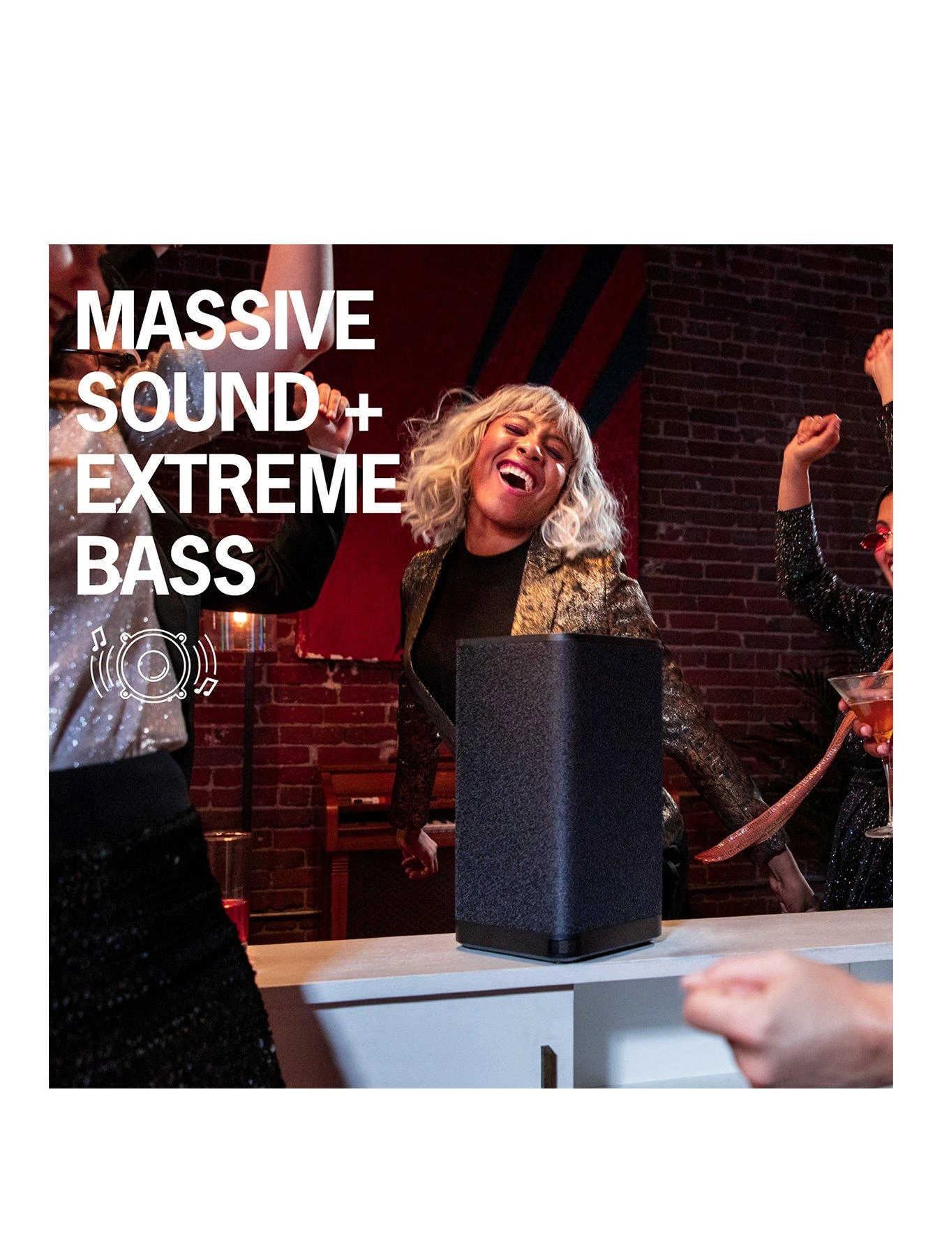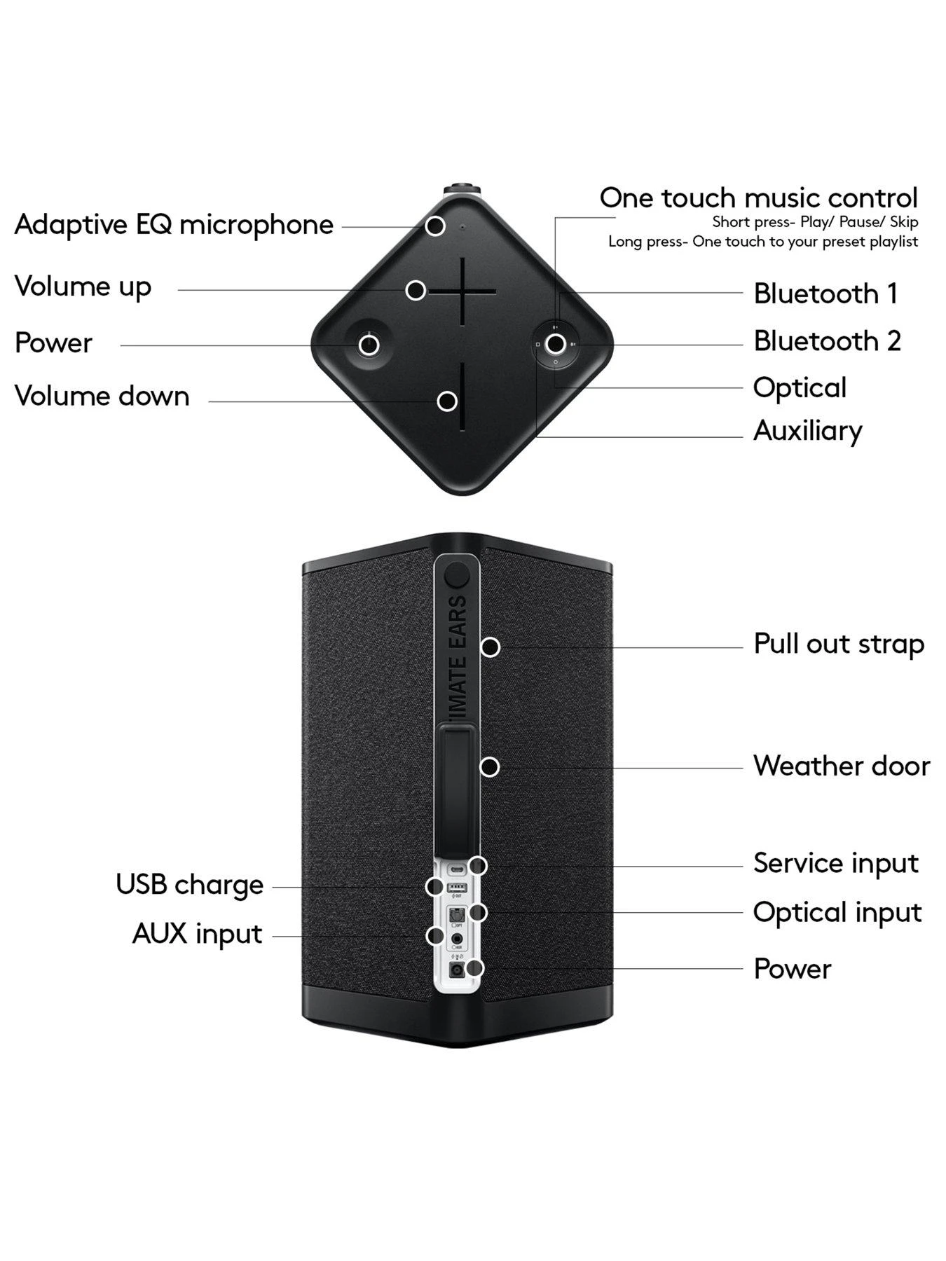 - Adaptive equalizer: This party speaker’s adaptive EQ literally reads the environment and automatically customizes the sound
